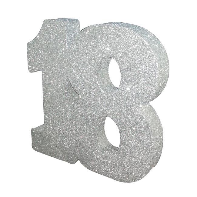 Tischdeko "Glitzerzahl Silberne 18" 20 cm