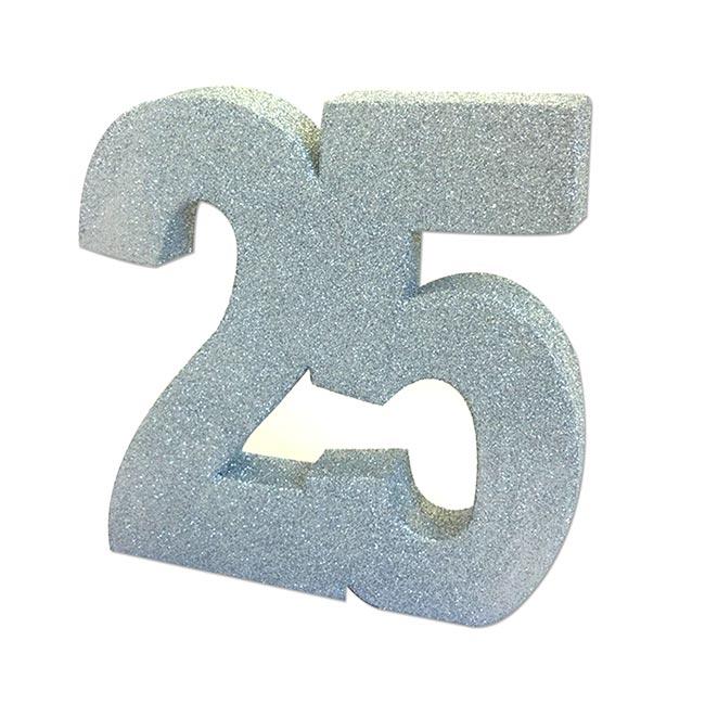 Tischdeko "Glitzerzahl Silberne 25" 20 cm