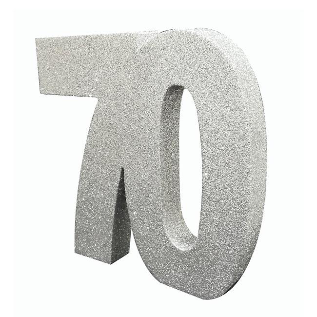 Tischdeko "Glitzerzahl Silberne 70" 20 cm