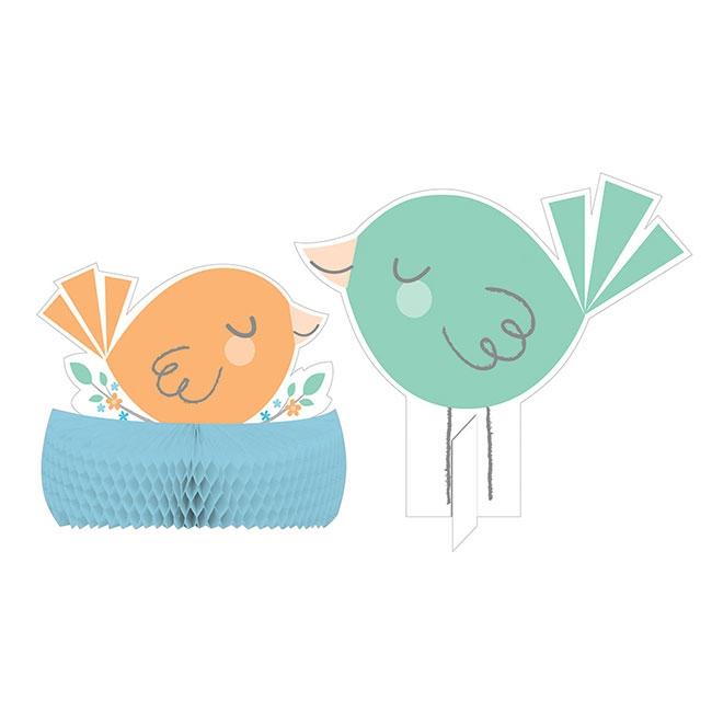 Die Tischdeko "Hello Baby Boy" ist zweiteilig, und besteht aus zwei niedlichen Vögelchen die es sich gerne auf Ihrem Tisch bequem machen möchten. Dargestellt ist ein grüner, größerer Vögel (ca. 22 x 19 cm), sowie ein kleiner Vogel in einem Nest aus blauem Wabenpapier (ca. 15 x 18 cm). Das Nest muss selbst aufgefächert und mit den angebrachten Klebepads fixiert werden. Bei dem größeren Vogel wird, für die Standfestigkeit, einfach ein kleines Stück Pappe eingesteckt.