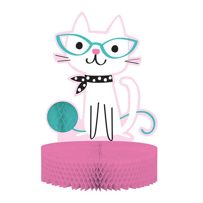 Die Tischdeko "Kleines Kätzchen Kitty" hat eine Höhe von ca. 30 cm. Sie besteht aus beidseitig bedruckter Pappe und weißem Wabenpapier. Dieses muss noch von Ihnen aufgefächert werden. Anschließend fixieren Sie es mit Hilfe der Klebestreifen. Der Durchmesser vom Wabenpapier beträgt ca. 23 cm. Die Pappe zeigt eine süße Katze mit Wollknäuel.