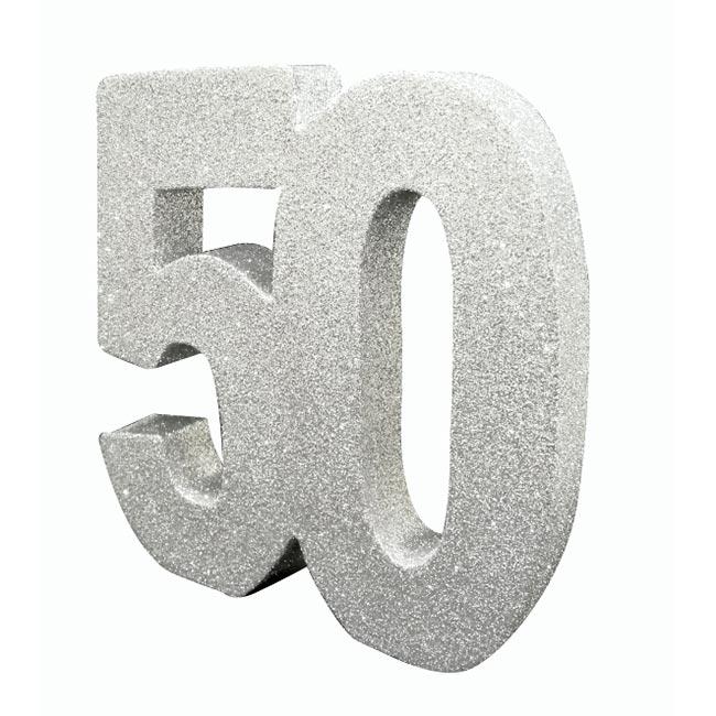 Tischdeko "Silberne 50" mit Glitzer 19 cm