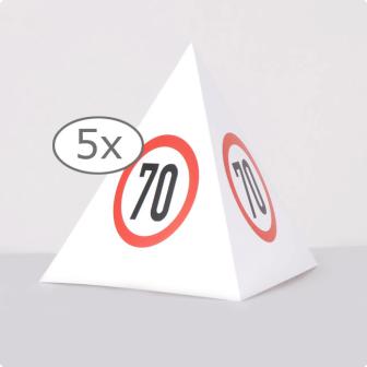 Tischdeko Verkehrsschild-Pyramide 70. Geburtstag 13,5 cm 5er Pack