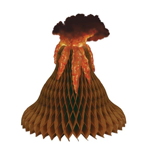 Der Tischdeko-Vulkan "Dinosaurier Park" ist ca. 38 cm groß. Er besteht aus Pappe und Wabenpapier. Dieses muss zunächst von Ihnen aufgefächert werden, bevor Sie den Vulkan auf den Tisch stellen können.