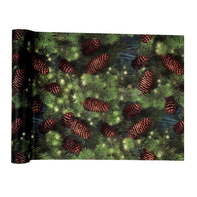 Der Tischläufer "Tannengrün" ist ca. 5 m lang und besteht aus Polyester. Die Breite beträgt ca. 30 cm. Als Motiv ist auf dem Läufer Tannengrün abgebildet; auch Tannenzapfen sind zu sehen. Kleine Lichter leuchten durch die Nadeln hindurch.