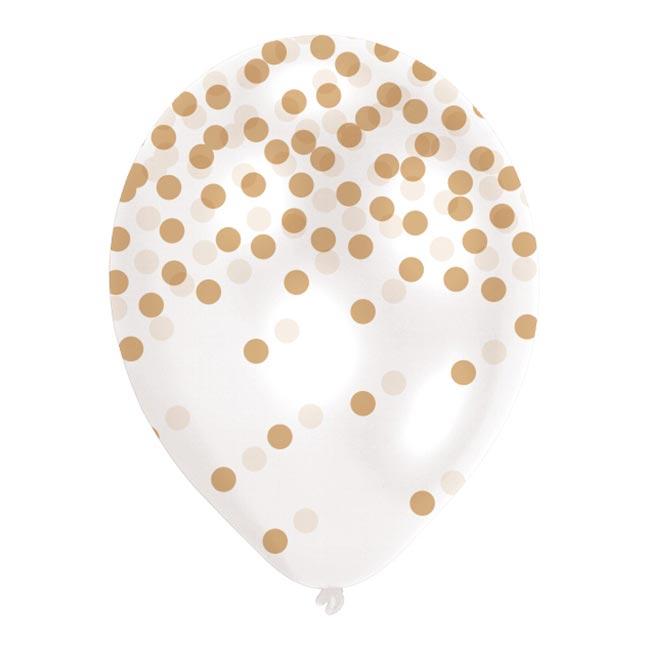 Transparente Luftballons "Punktespaß" 6er Pack-gold