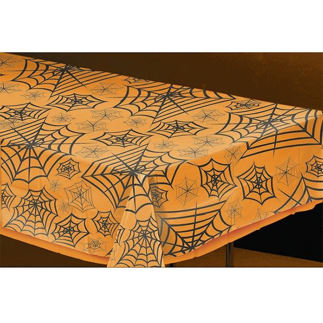 Die transparente Tischdecke "Große Spinnennetze" besteht aus Kunststoff und hat eine Größe von ca. 137 x 274 cm. Bitte beachten Sie, dass lediglich die durchsichtige Tischdecke mit den schwarzen Spinnennetzen geliefert wird. Die orangefarbene untere Tischdecke ist nicht im Lieferumfang enthalten.