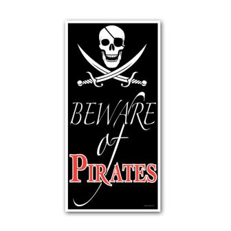 Mit dieser Deko wird Ihre Haustür zur Pforte in die Welt der Freibeuter, Seeräuber und Piraten. Die Türdeko besteht aus Kunststoff und ist mit einem typischen Piratensymbol mit Totenkopf und gekreuzten Säbeln bedruckt. Darunter befindet sich die Warnung "Beware of Pirates" (Hüte Dich vor Piraten). Diese Partydeko gehört einfach an jede Eingangstür einer Piraten-Party!