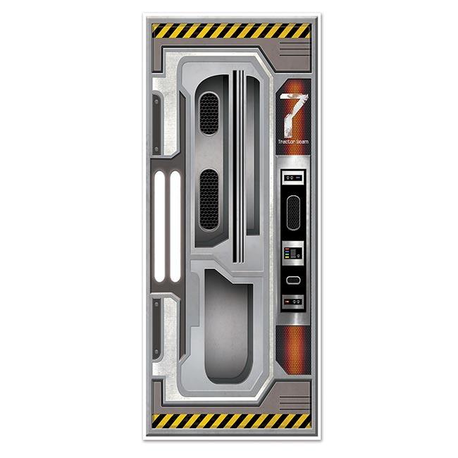 Die Türdeko "Space Abenteuer" ist ca. 183 x 76 cm groß und besteht aus Kunststofffolie. Sie ist nicht selbstklebend. Als Motiv zeigt sie die Tür eines Spaceships.