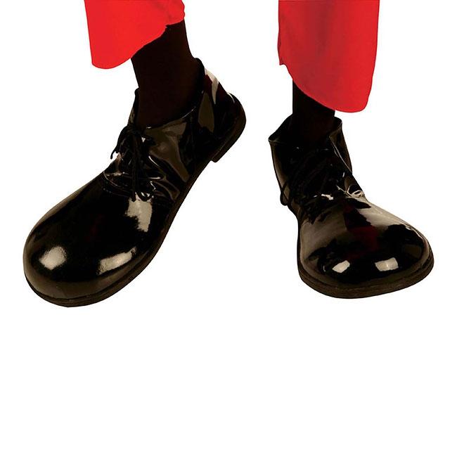Die Übergroßen "Charlie"-Schuhe sind schwarz und bestehen aus Kunststoff. Die Länge der Schuhe beträgt ca. 33 cm, die Breite ca. 13 cm.