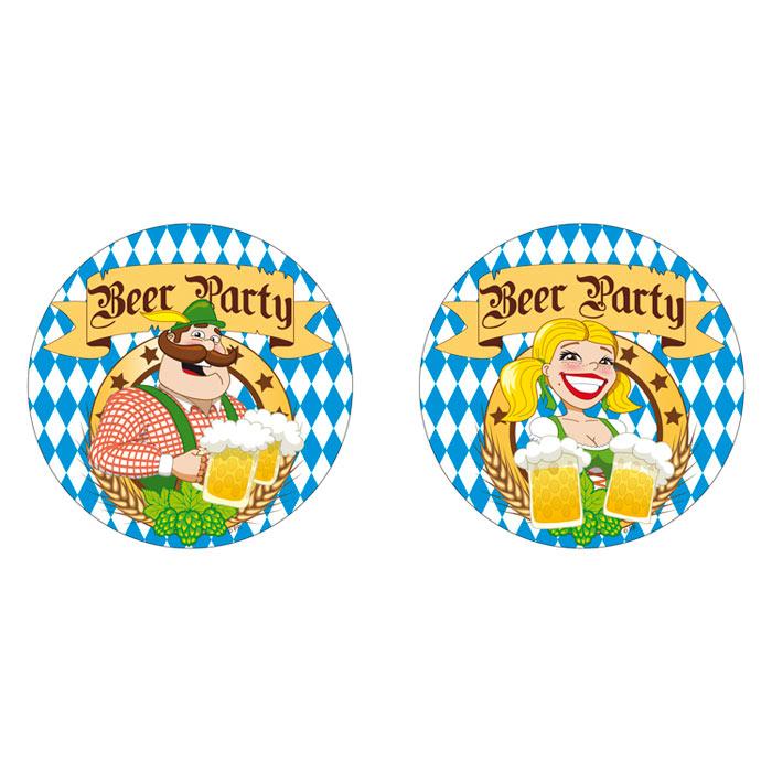 Diese Untersetzer sind fast schon Pflicht, wenn Sie mit der Planung Ihres eigenen kleinen Oktoberfestes beschäftigt sind! Im Hintergrund sind die bayerischen Rauten zu sehen, davor steht "Beer Party" und ein fesches Madel und ein strammer Bursche servieren Ihnen das Maß Bier, natürlich mit leckeren Schaumkronen. Je Motiv sind jeweils 5 im 10er Pack enthalten, so kommen Ihre weiblichen und männlichen Gäste ausgeglichen auf Ihre Kosten. So fühlen sich auch jene Gäste nicht ausgegrenzt, die gar kein Bier im Glas haben!