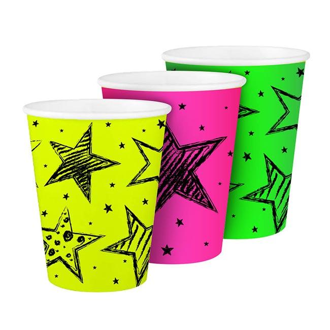 UV Leucht-Pappbecher "Neon" 6er Pack