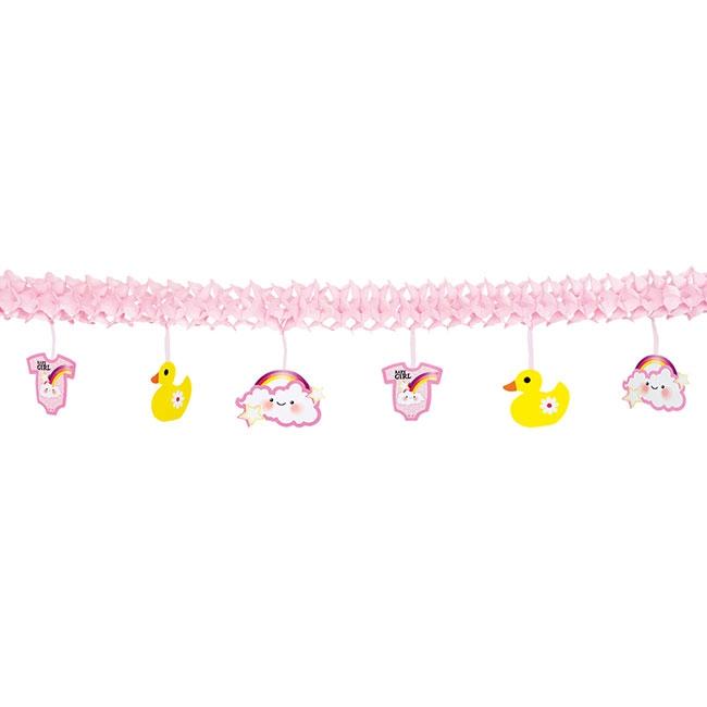 Wabenpapier-Girlande "Schnulleralarm" 4 m-rosa