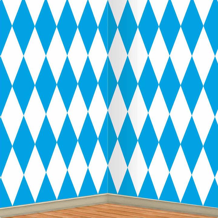 Mit dieser riesigen blau-weißen Dekofolie wird jeder Partyraum zu einem bayrischen Oktoberfest-Location. Die ca. 1,2 x 9,1 m große Dekofolie ist komplett mit dem bekannten bayrischen Rautenmuster bedruckt. Aufgrund seiner Größe verwandelt diese Wanddeko mit einem Schlag ganze Wände und sorgt somit direkt für richtiges "Wiesn-Feeling" bei Ihren Gästen.