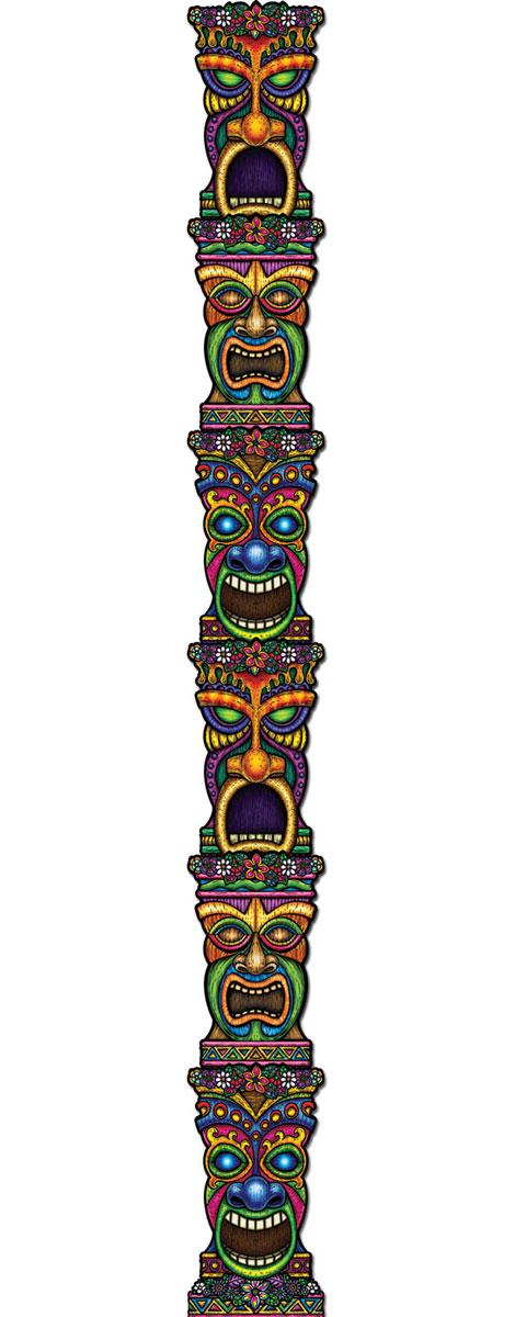 Der Tiki-Totempfahl ist ideal als Raumdeko oder Fensterdeko, denn er ist beidseitig bedruckt. Er ist ca. 210 cm lang und ca. 20 cm breit. Holen Sie sich die hawaiianische Kultur auf Ihre Party!