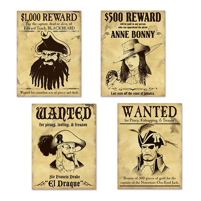 Artikel: Wanddeko "Wanted Pirates" 4er Pack