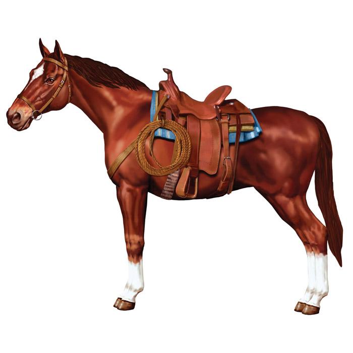 Diese Wanddeko ist ein MUSS für alle Cowboys und ein Traum für jeden kleinen Pferdenarr. Die einseitig bedruckte Wanddeko Westernpferd ist ein ca. 93 cm großes Pferd aus Pappe, das Dank Metallösen an Kopf, Hals und Beinen komplett beweglich ist. So können Sie das Pferd an der Wand nach Ihrem Geschmack in verschiedenen Positionen drapieren.