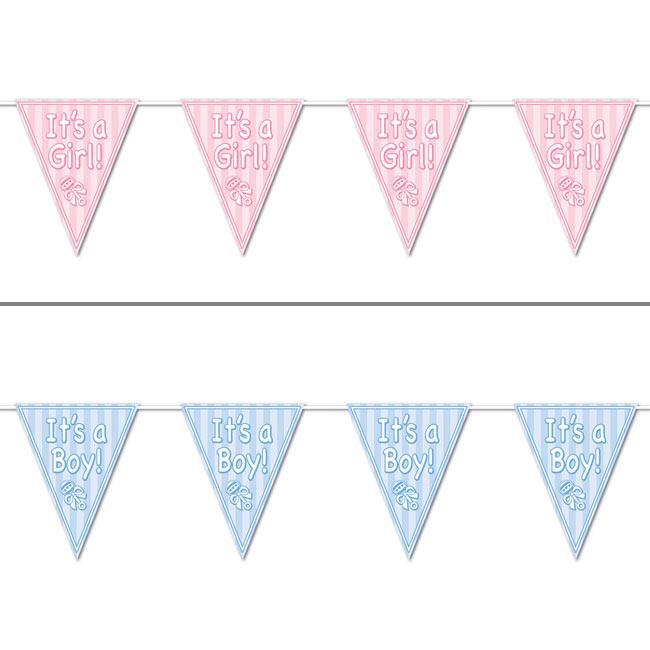 Sie sind Eltern geworden? Na das muss natürlich gefeiert werden...hängen Sie doch eine Girlande auf, egal ob noch im Krankenzimmer oder schon zu Hause, oder bringen Sie diese schöne Wimpel-Girlande als Geschenk mit. Natürlich sollte man sich vorher informieren ob es ein Junge oder ein Mädchen geworden ist, denn unsere Wimpel-Girlande ist wählbar zwischen "It's a Girl" in der Farbe rosa und "It's a Boy" in der Farbe hellblau. Die Girlande ist ca. 3,7 m lang und ca. 30 cm hoch.