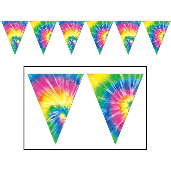 Mehr Info: Die Wimpel-Girlande Batik-Regenbogen besteht aus wetterfester Kunststofffolie und kann daher im Innen- sowie Außenbereich verwendet werden. Die einzelnen Wimpel haben eine Größe von etwa 21,5 x 27,5 cm, die Girlande erreicht insgesamt eine Länge von ca. 3,7 m.