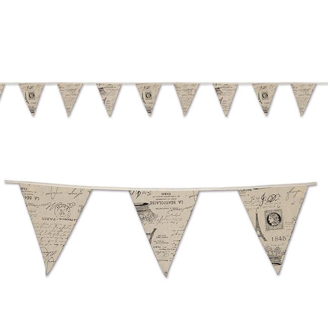 Mehr Info: Mit der Wimpel-Girlande im Vintage-Look verpassen Sie Ihren Räumlichkeiten den letzten Schliff für Ihre Frankreich-Party! Freuen Sie sich auf einen gelungenen Abend wie in Paris!