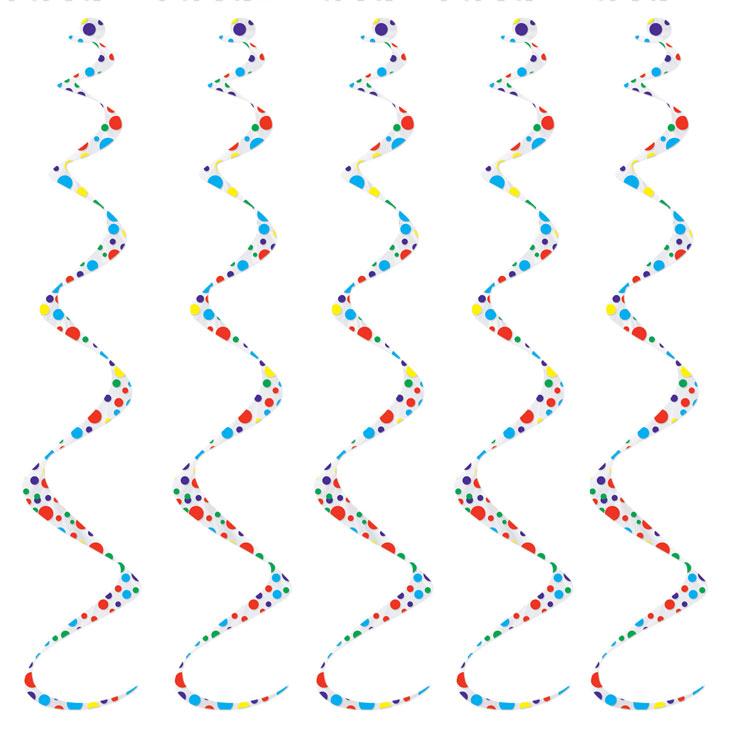 Artikel: Wirbel-Deckenhänger Bunte Punkte 61 cm 5er Pack