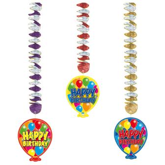 Wirbel-Deckenhänger "Happy Birthday Bunte Ballons" 76 cm 3-tlg.