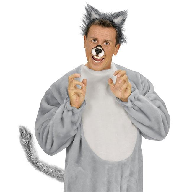 Der ca. 52 cm lange Wolfsschwanz ist grau-weiß. Er ist modellierbar, sodass das Accessoire in Position gehalten werden kann. Zum Befestigen an der Kleidung ist ein Band an dem Kostümzubehör befestigt. Wahlweise kann der Schwanz aber auch mit Hilfe einer Sicherheitsnadel (NICHT im Lieferumfang enthalten) befestigt werden.