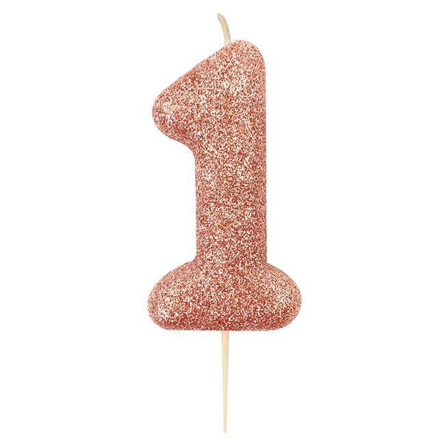 Artikel: Zahlenkerze "Glitzer in Roségold" 7 cm-1