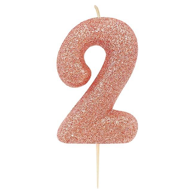 Artikel: Zahlenkerze "Glitzer in Roségold" 7 cm-2