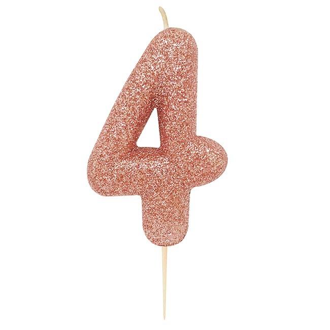 Artikel: Zahlenkerze "Glitzer in Roségold" 7 cm-4
