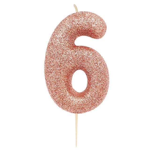 Artikel: Zahlenkerze "Glitzer in Roségold" 7 cm-6