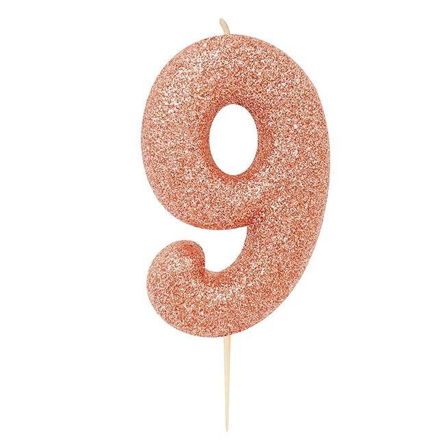 Zahlenkerze "Glitzer in Roségold" 7 cm-9
